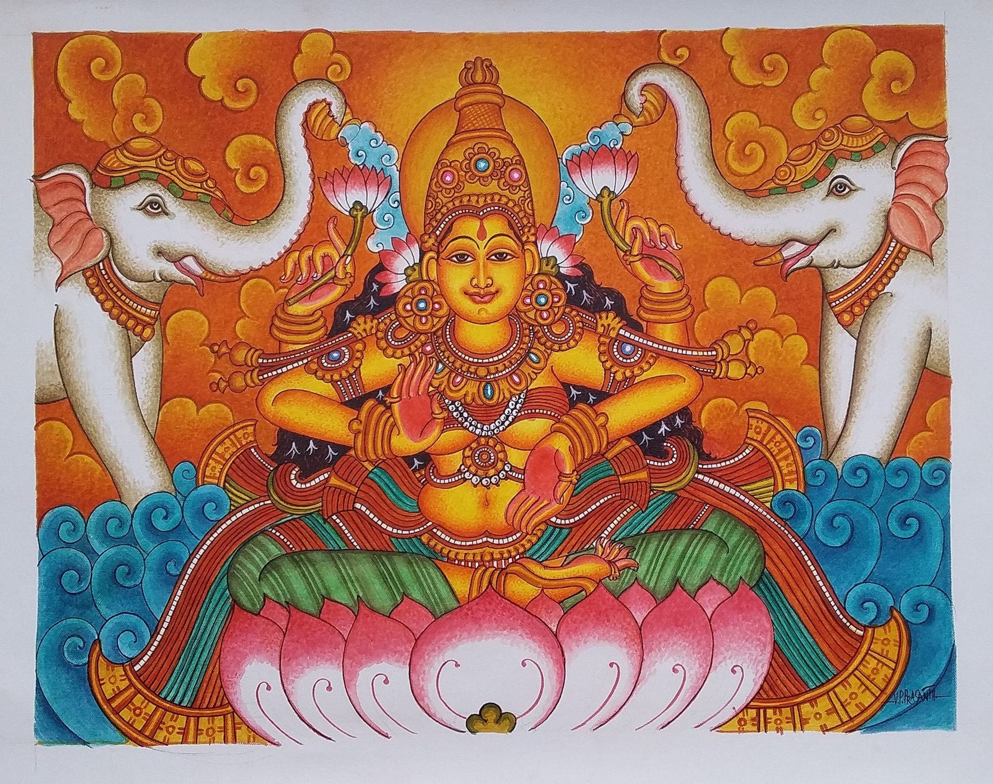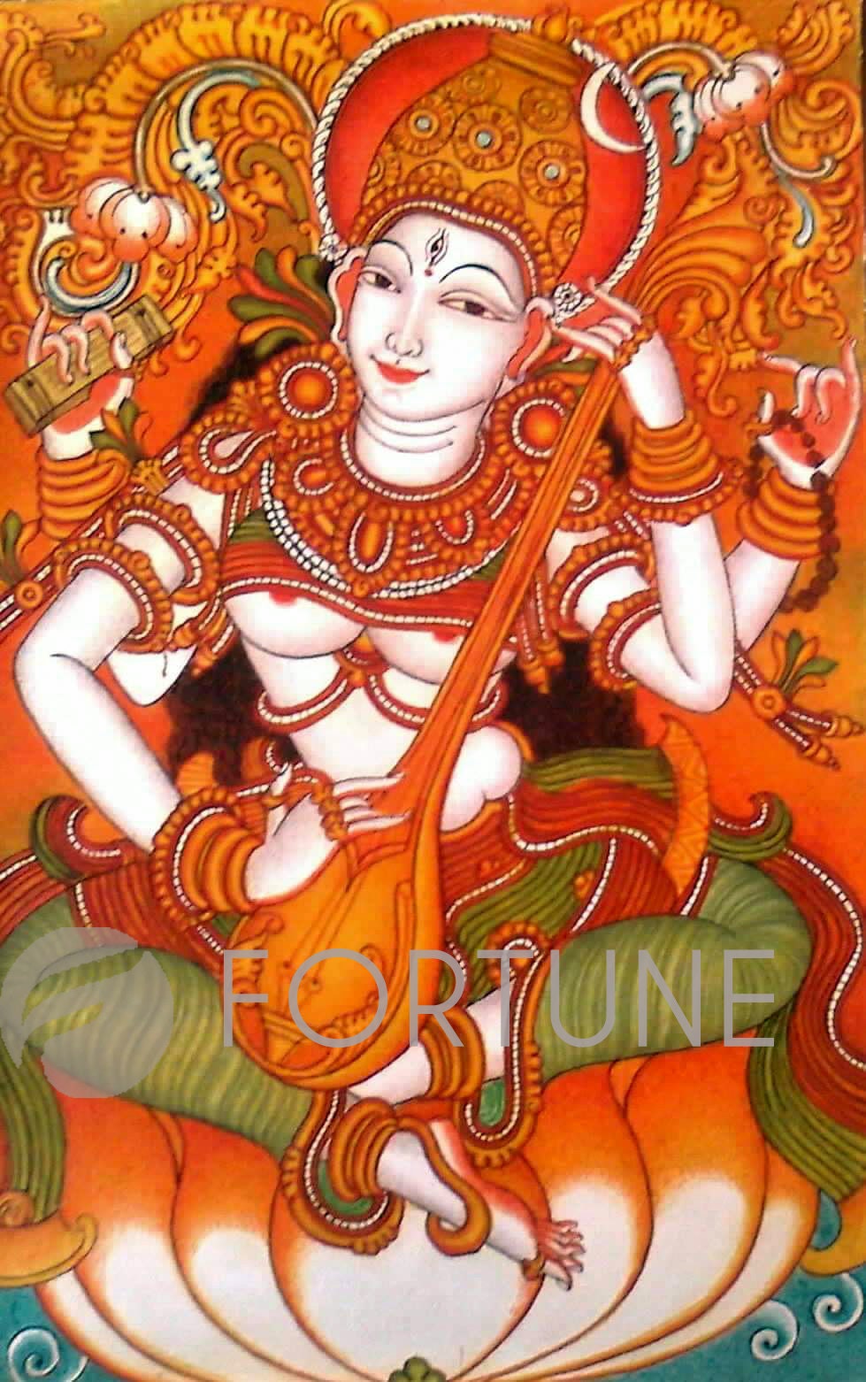 Original Kerala Mural Painting - Devi, Bhagavathi. Saraswathi